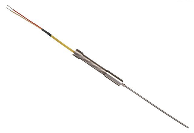 Conhecendo detalhadamente essa aplicação, a Mit Exacta desenvolveu os melhores sensores de temperatura com excelente custo-benefício. São confeccionados em haste compactada com óxido de magnésio (mineral), normalmente na liga tipo K (CRAL), segue abaixo principais modelos, fabricamos também outras medidas : Mod. Haste diâmetro 2.0mm : EX-TCOL-K-20-100-TT1000 Mod. Haste diâmetro 3.0mm : EX-TCOL-K-30-100-TT1000 Termopar mineral tipo K (CRAL) – junta quente isolada – bainha inox 310 diâm. 2 ou 3.0x100mm com pote liso selado com resina 300ºC (imp. – USA) com mola flexão 60mm – cabo em teflon/teflon (200ºC) com malha de cobre estanhado 500mm – norma Ansi – sensor (haste) para até 1000ºC – precisão + / – 0,75% –