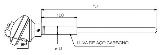 Termopar Tipo K, elemento Simples, fio 14 AWG, com tubo /cerâmico 610, ø 15 mm x 600 mm, com cabeçote em /alumínio com tampa parafusada.tr