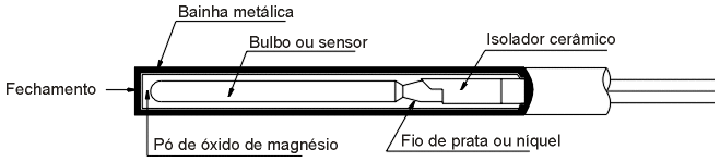O sensor é interligado ao terminal através de fios e montado em um tubo metálico com uma extremidade fechada com o preenchimento mineral, com boa transferência de calor e protegendo o sensor de choques mecânicos. A extremidade aberta do tubo é selada com uma resina epóxi, ficando assim o sensor protegido contra o ambiente de utilização, podendo ser montados em potes lisos ou rosqueados, dependendo da aplicação.